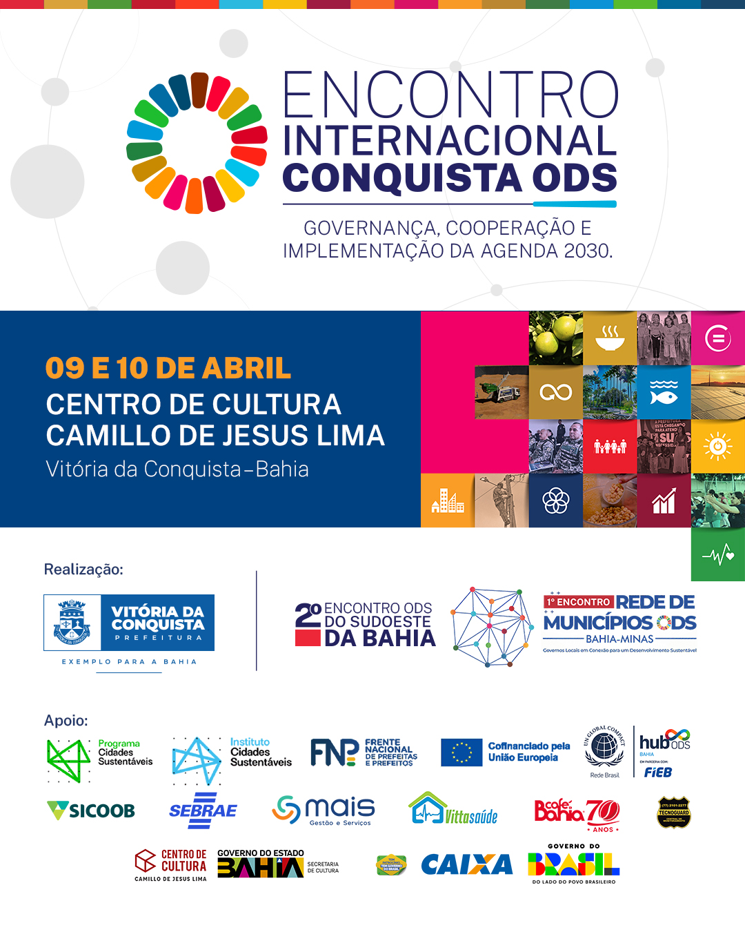 O encontro também engloba o 2º Encontro ODS do Sudoeste da Bahia e o 1º Encontro da Rede de Municípios ODS Bahia-Minas, ampliando o alcance das discussões e das ações conjuntas entre os territórios e, pela primeira vez, conta com o apoio da Caixa Econômica Federal.