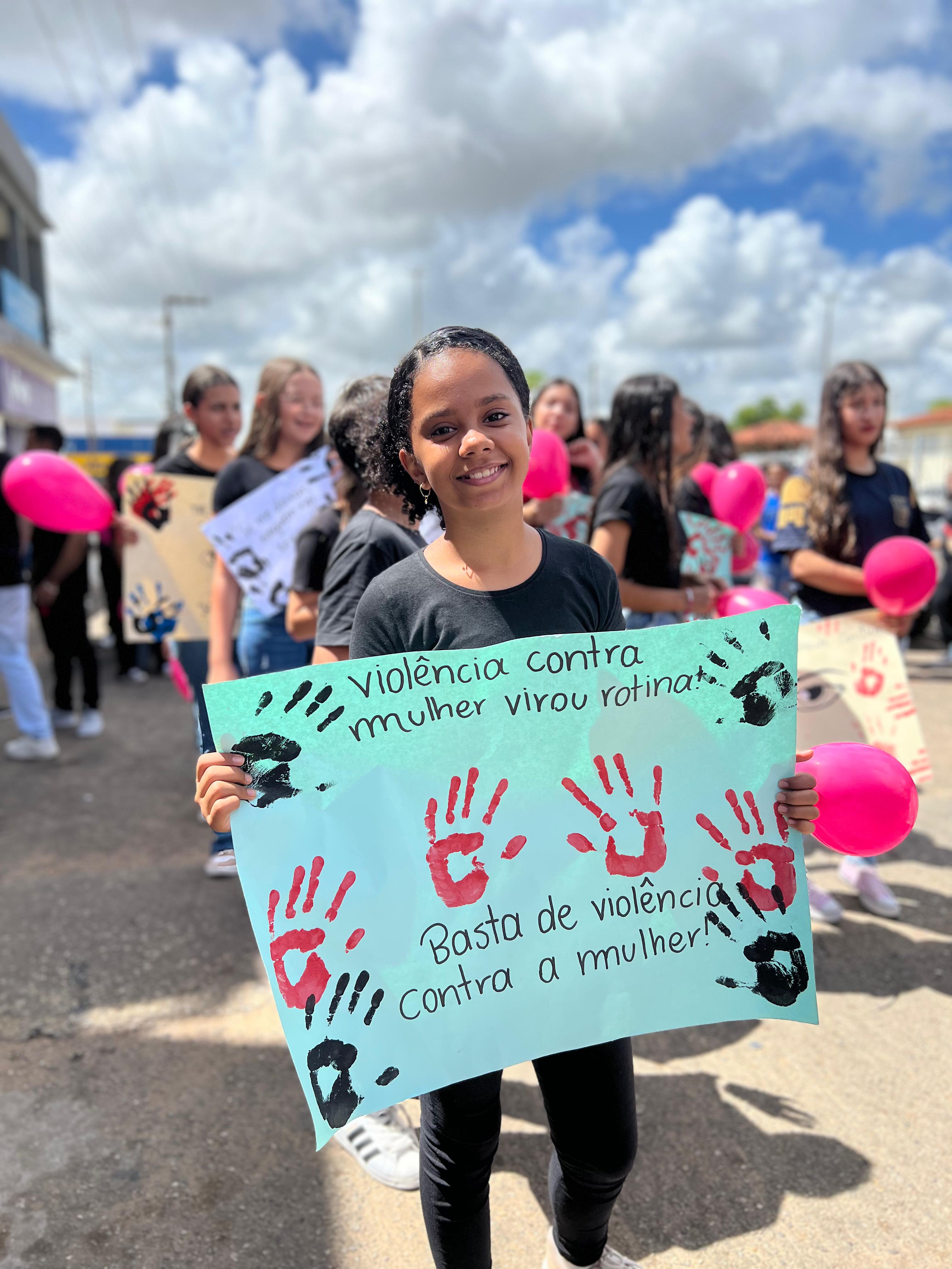 Na ocasião, os estudantes do Ensino Fundamental (7° ao 9° ano) e Ensino Médio (1° ao 3° ano) compareceram ao evento com roupas pretas, segurando cartazes com frases ditas por homens a mulheres, em situações de violência. A exibição dos escritos faz parte de uma reflexão crítica e de alerta para compreender os sinais de violência, que vão para além da física, estendendo-se para a verbal, psicológica e sexual, por exemplo.