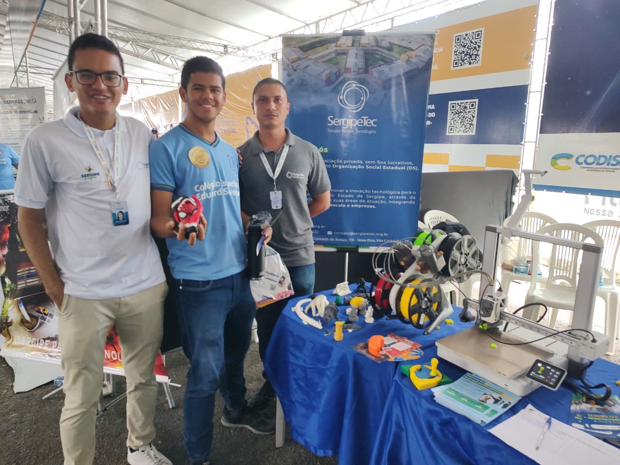 Pedro Miguel Mendonça, de 17 anos, é estudante do 3º ano do Ensino Médio. Para ele, o que mais chamou a atenção no estande da Sedetec foram os protótipos exibidos pelo SergipeTec. “O mais interessante foi o dragão articulado. Com a inovação nessa área de impressão 3D, incluindo tecnologias neurais, podemos fazer com que alguém que não tem alguma parte do corpo possa ter mais qualidade de vida. A tecnologia tem que ser usada para ajudar a humanidade, para a gente conseguir evoluir”, opinou.