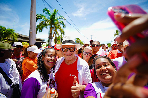Foto: William Rocha/Divulgação/PMC\O prefeito Luiz Caetano (PT) com populares durante lavagem em Camaçari